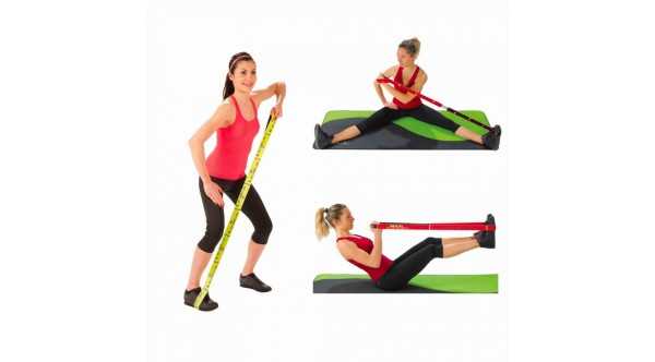 L'Elastiband est une bande de préhension élastique tissée composée d'élastodiène, de polyester et de polyamide, qui permet le travail des principaux groupes musculaires (bras, dos, fessiers, buste, épaules, abdominaux...).